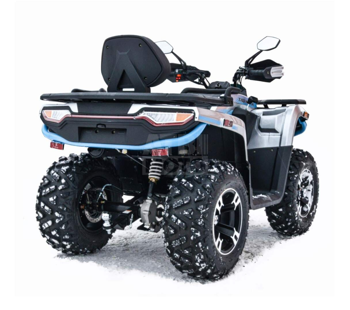 Квадроцикл оборудован прочными литыми дисками и внедорожной резиной, которая обеспечивает надежное сцепление с грунтом и позволяет уверенно двигаться по сложным трассам. Светодиодная оптика обеспечивает яркое освещение даже в условиях плохой видимости.