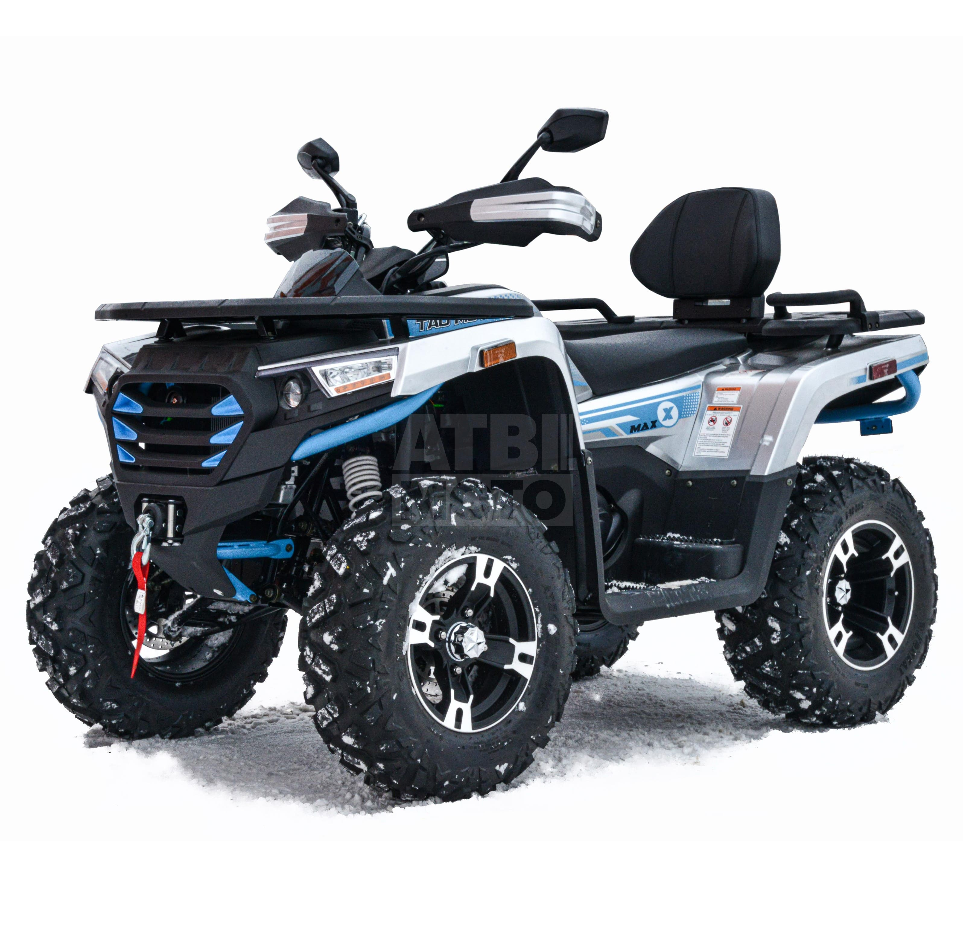 Гидравлические тормоза обеспечивают точное и эффективное торможение, а усиленная защита двигателя и рукояток предотвращает повреждения при эксплуатации в сложных условиях. Встроенная лебедка дает возможность легко справляться с любыми препятствиями, делая квадроцикл универсальным помощником в любых ситуациях.