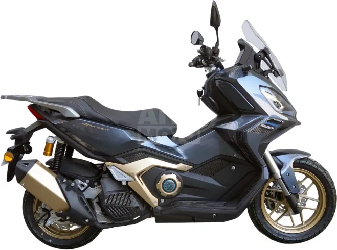 В основе скутера — проверенный четырехтактный двигатель с водяным охлаждением и мощностью шестнадцать лошадиных сил. Стабильная работа в любых условиях и уверенный разгон даже при полной загрузке. Вариаторная трансмиссия делает управление лёгким и понятным — никаких рывков, только плавный ход. Надёжность конструкции и сбалансированная подвеска обеспечивают уверенное поведение на дороге, а матовое покрытие корпуса придаёт внешности строгий и современный вид.