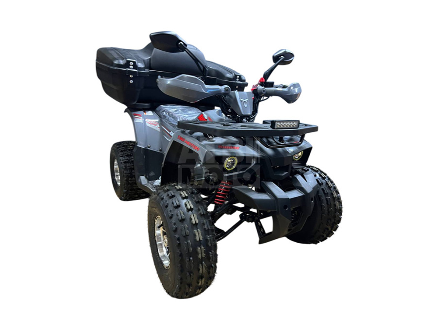 Привод у Avantis Hunter 8 New Premium 125 кубов – цепной на заднюю ось. Усиленная 428 цепь намного меньше подвержена растягиванию и поломкам, что позволяет реже обращаться в сервисный центр за квалифицированной помощью. На борту имеется дополнительное светодиодное оснащение, поворотники и фаркоп для транспортировки небольшого прицепа.